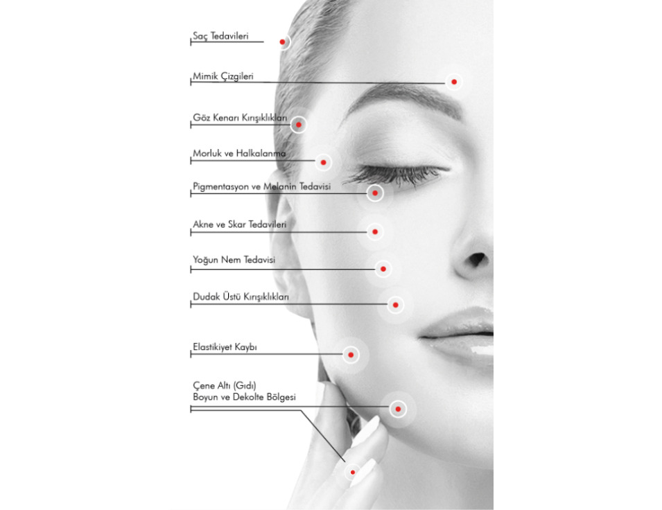 Yara almış dokuların onarılması, cerrahi izlerin onarılması, kistik akne izleri, yaşlanma karşıtı kırışıklıkların giderilmesi, seboreik dermatit ve alopesi onarımları gibi bir çok cilt problemlerinin çözülmesinde kişiye özel protokoller sunar.
